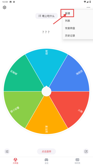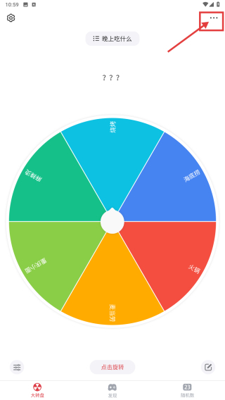 1启动用于辅助决策的转盘类应用后,找到界面右上角的三点图标并点击,即可打开包含更多操作选项的功能菜单。