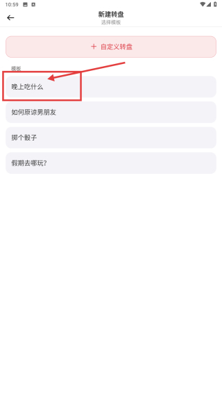3、进入新建转盘页面后,挑选“晚上吃什么”的模板,接着进入该模板的设置界面。