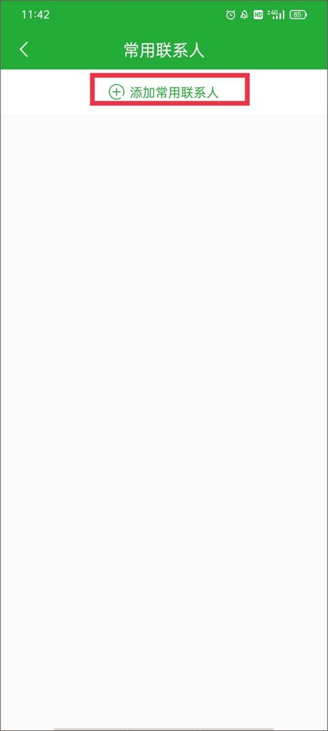 2在常用联系人页面,能看到此前添加的所有常用联系人信息汇总,找到标红框的“+添加常用联系人”按钮并点击即可。