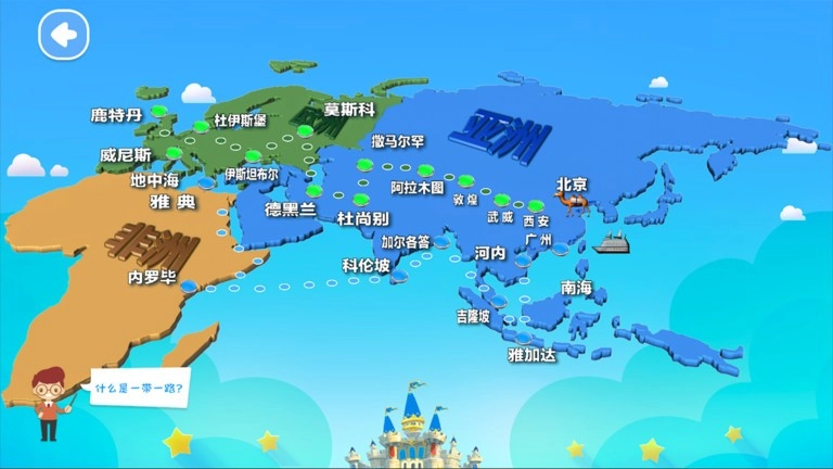 点击寻找探险家的图标,扫描地球仪的各个区域,去发现不同的探险家,跟随他们的航行路线,探寻地球的发展历程。
