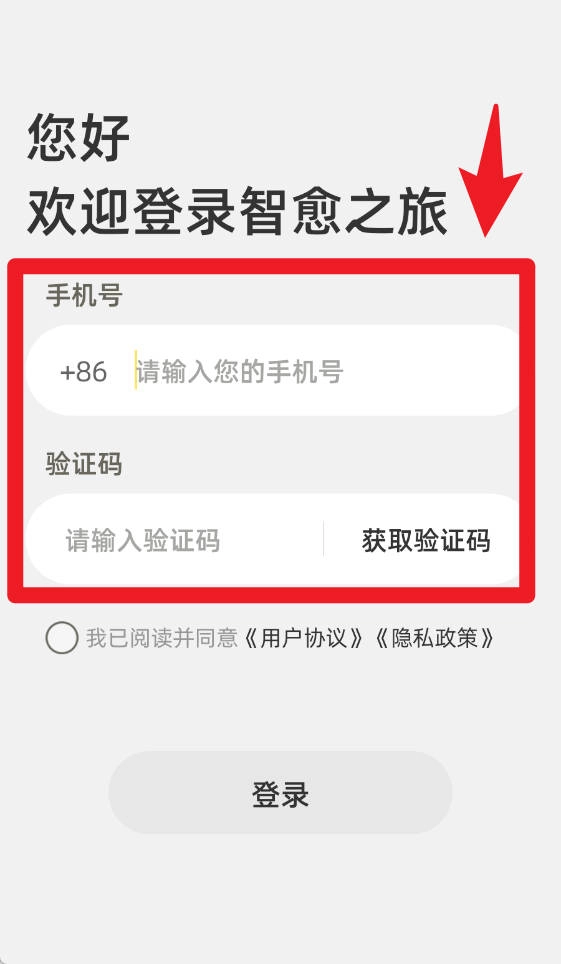 在登录界面输入手机号并获取验证码,填写验证码后勾选协议选项,点击登录按钮就能快速进入系统,操作十分简便。