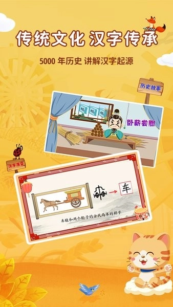 ·原创动画结合汉字讲解——以原创动画为载体,解读汉字的含义。把原本枯燥的学习过程,转变为生动的汉字动画演示。从基础到深入地介绍汉字的起源,帮助孩子理解每个汉字背后的真实意义。