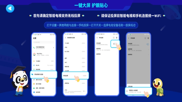 打开设置-其他网络与连接-手机投屏-打开开关-选择电视设备名称-投屏成功。
