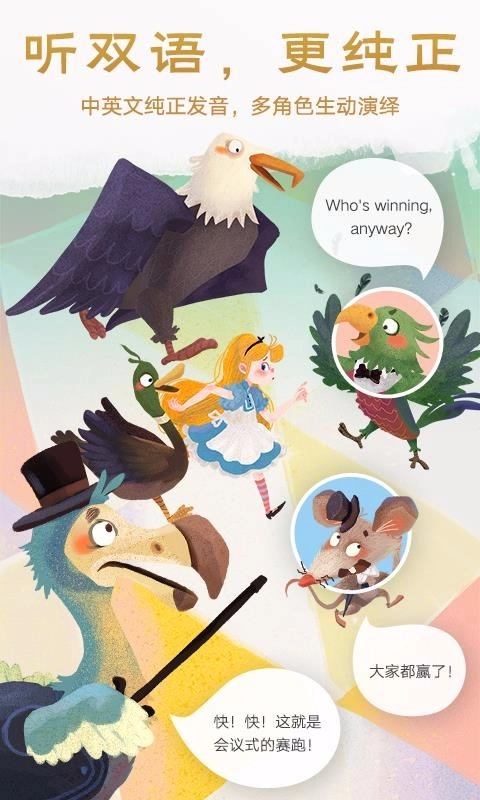 提供标准中英文发音,多位角色声情并茂地讲述故事。