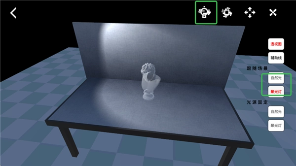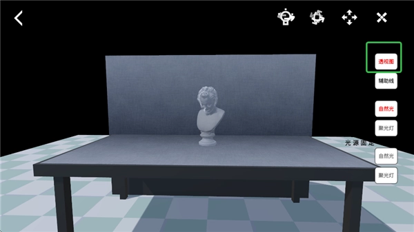 选好进入后,点击透视图,就能呈现静物的透视状态。