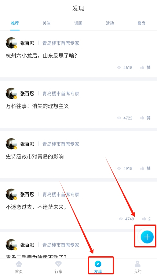 1打开软件后,进入发现页面,点击右下角的加号图标。