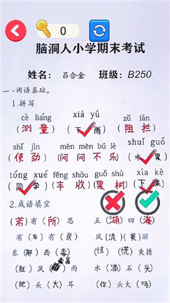 为了增强游戏的沉浸感,玩家需细致观察真实的试卷,并在老师的批注中找出错别字、语法错误及标点问题,从而提高批改试卷的效率。该游戏操作流畅,包含众多关卡,让玩家随时都能享受到愉悦的游戏体验。