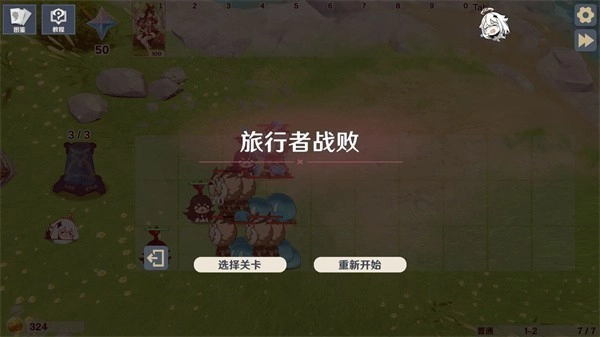 3、原石数量显示在左上角,摩拉数量显示在左下角,右下角显示的是当前关卡及波次。