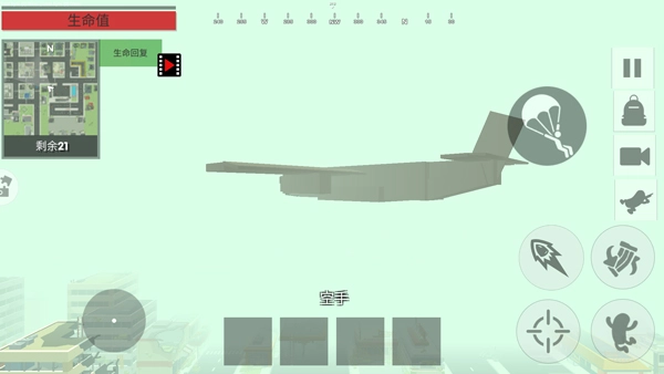 3、来到游戏之后,你会出现在飞机上,你需要找一个安全的地方进行跳伞,然后安全落地;