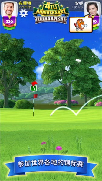 3、简单直观的击球操作轻松上手,主要考验策略和细节把控能力,想要顺利进洞必须仔细观察各方面信息击球。