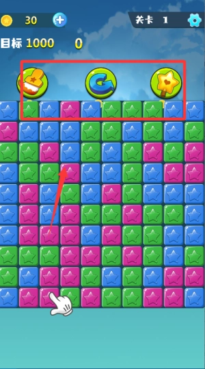 1、进入游戏后先观察星星分布,优先点击颜色集中区域进行消除,快速积累分数完成基础目标。