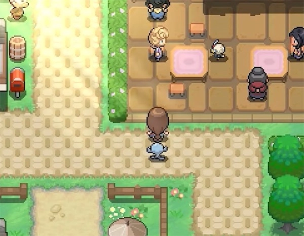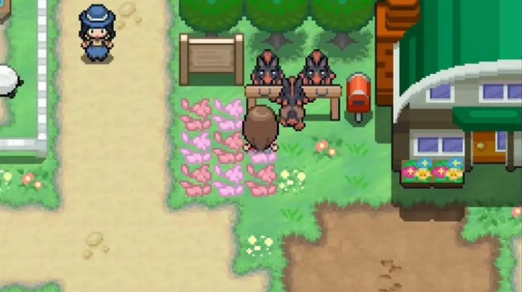 3、当玩家拿到宝可梦后出门右拐,来到这里与其对话进入第一次的战斗。