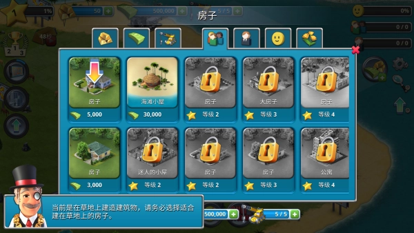 3、欢迎来到这个新的游戏板块,建造一个属于自己的城市,首先呢,为我们的居民建造可以居住的房屋。