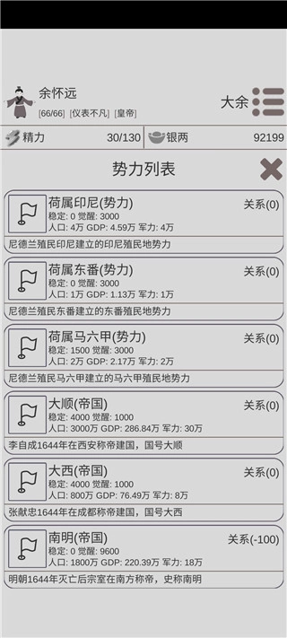 大家都知道,这款游戏目前仍处于半成品状态,不仅存在大量的 bug,而且许多功能也尚未完善。就好比,游戏里已经出现了南明,可大明居然还存在,同时起义军也依旧活跃着。