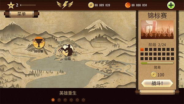 1、进入游戏主界面后,我们选中锦标赛(需战胜山猫才能解锁下一关),接着点击“战斗”。