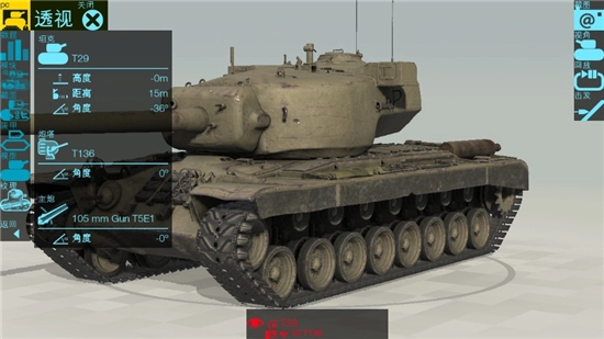 3、而点击透视、等效、撞击、视角,则可以对坦克调整位置,观看具体的数值;