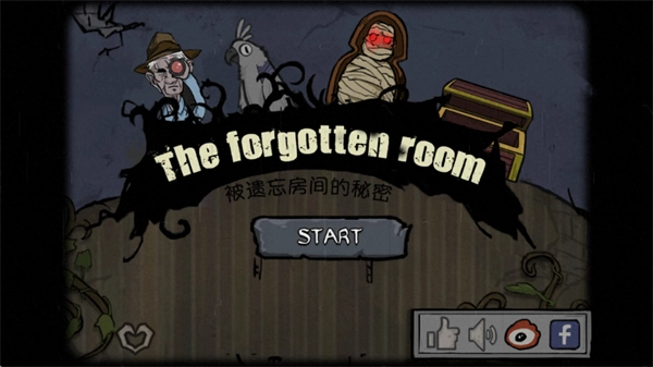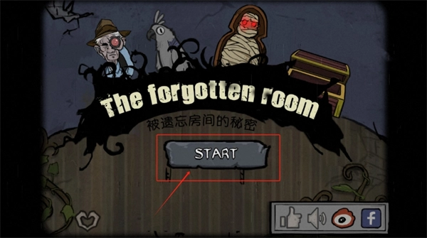 1、点中间红色箭头标注的START按钮开始游戏,进入被遗忘房间的冒险。
