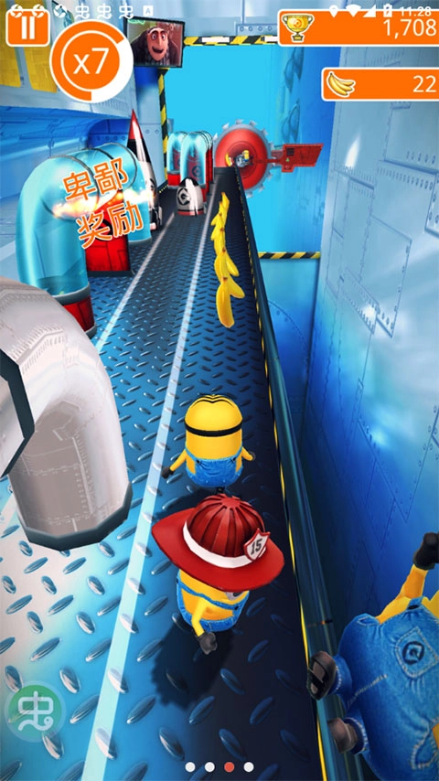 2、步入小黄人的疯狂世界,从反恶棍联盟的总部,到维克多的老巢,甚至穿越回远古时期,你都能在各种疯狂的场景中肆意奔跑。每一处都设置了别具一格的障碍,等你去攻克,一定要睁大眼睛,仔细留意!当你准备好后,就可以踏入顶级香蕉房间,在无尽跑酷模式中你追我赶,与你所在地区乃至世界各地的其他玩家一较高下,解锁大量丰厚奖励!
