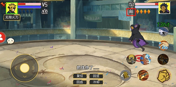 3、完成选择后,点击“开战”按钮。此时,可通过操作左下角来移动角色,而右侧区域用于技能释放。