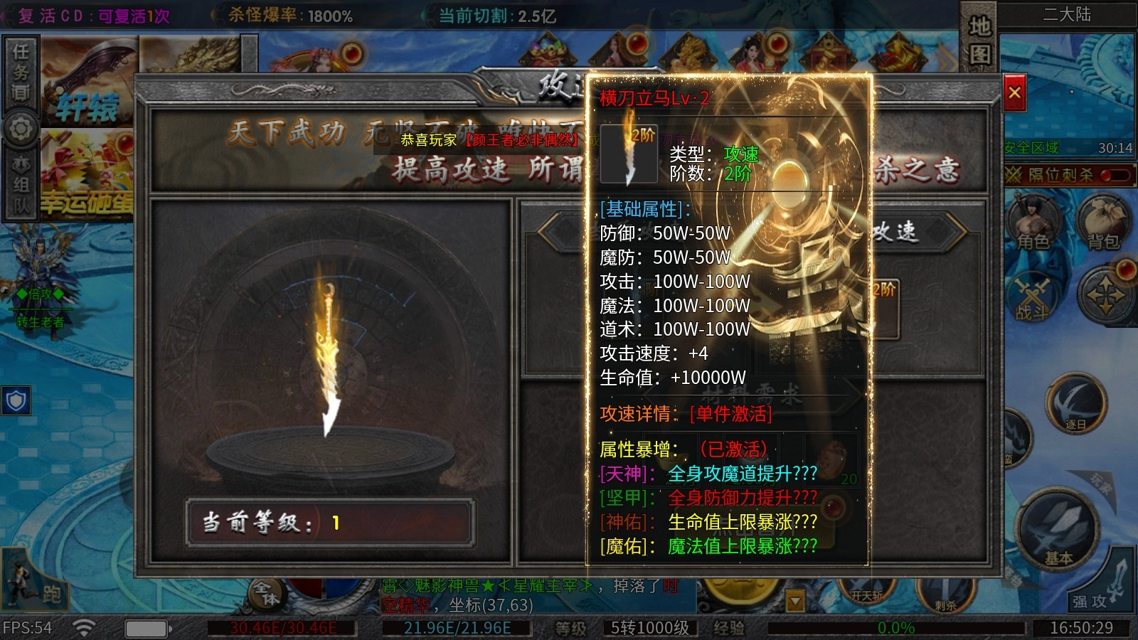 1、攻速增强:只需耗费元宝、白银以及赤练石便可进行升级,在赋予全方位属性的同时,还可获取可观的攻速加成。