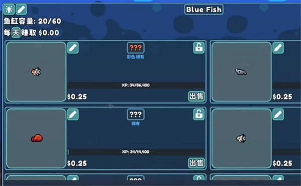 2、这些鱼长大以后就能直接售卖,可以得到一些金币