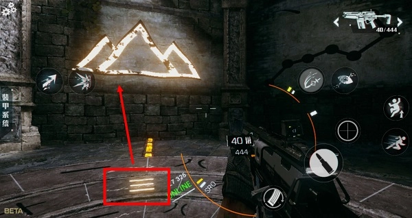 再来是走上【2】键,操控中间环和外环移动,使中间圈圈上的图案,使墙上的“山”亮起,离开【2】键。
