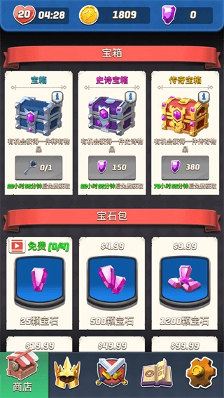 在商店还可以购买各种宝箱,这些宝箱需要花费钻石或钥匙进行购买。