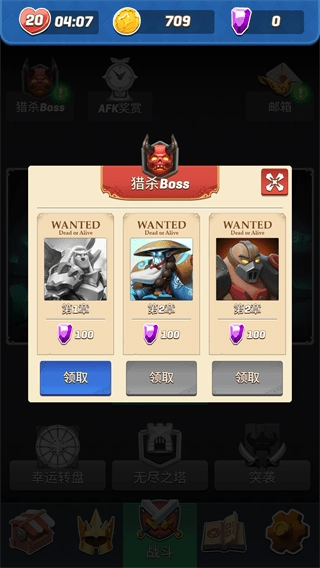 击败最终的大boss可以获得不同的的金币奖励以及新的装备。