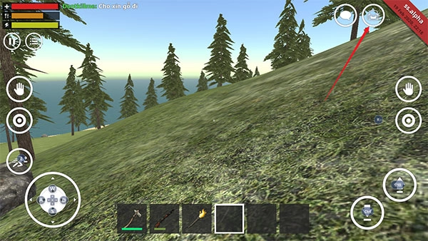 1、在野外生存模拟器游戏中点击左上角的背包图标。