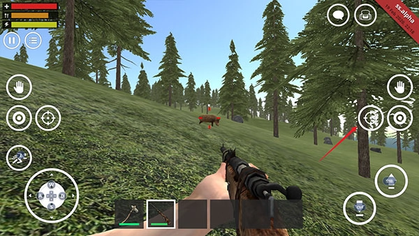 3、接着拿出武器,点击瞄准便能开火(通常是石斧,若想获得其他武器则需自行打造)。