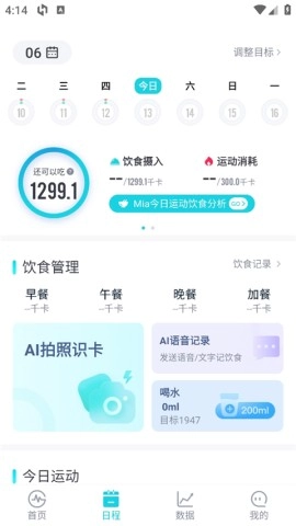 饮食数据可视化:每日计划中新增饮食版块,清晰展示每日饮食摄入量(结合拍照识卡功能)及推荐摄入量,吃多少一目了然!