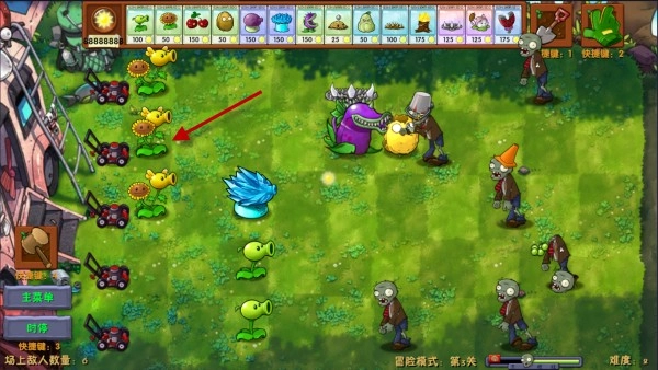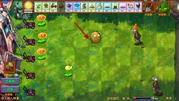3、当有僵尸出现后,我们可以种植一些攻击型植物进行防御。