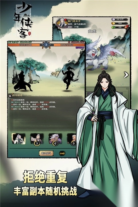 《少年侠客》是一款武侠题材的放置挂机RPG手游,创新性地采用休闲放置玩法,十分护肝,即便生活忙碌,也能让你领略江湖侠客的快意洒脱。只需简单点击,角色便会自动修炼、打怪、提升等级,而你则能悠然自得地喝喝茶、聊聊天,尽情享受这份闲适惬意。