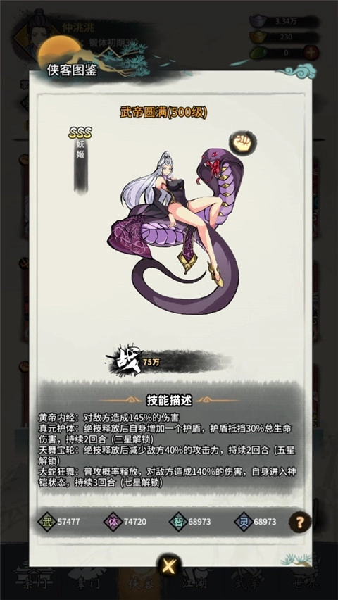 2.新增功能:侠客皮肤,拥有后可强化侠客四维属性或大招技能效果