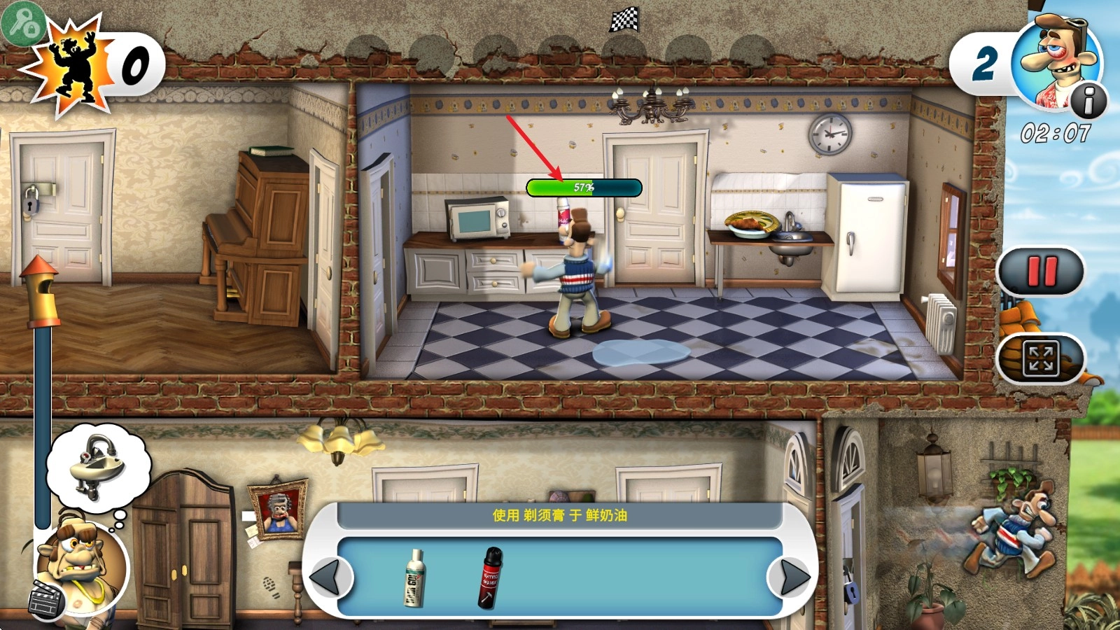 3、在游戏里,我们得在场景中寻找道具,借助这些道具来完成恶作剧。