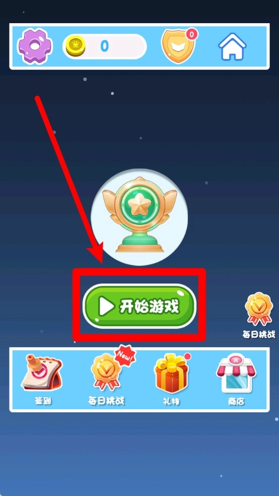 1.开始游戏按钮:点击绿色的开始游戏按钮即可进入冒险关卡,快速开启挑战模式,感受紧张刺激的文字闯关乐趣。