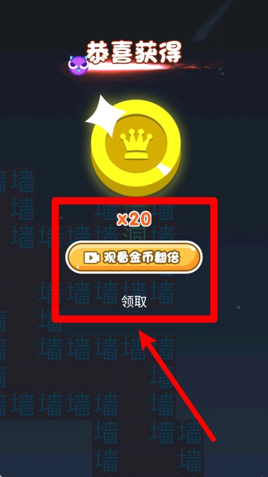 3. 奖励领取页面:成功通关后,玩家能够获取金币奖励。若点击领取按钮,或者选择观看视频,收益都将翻倍,助力玩家更迅速地解锁更多精彩内容。