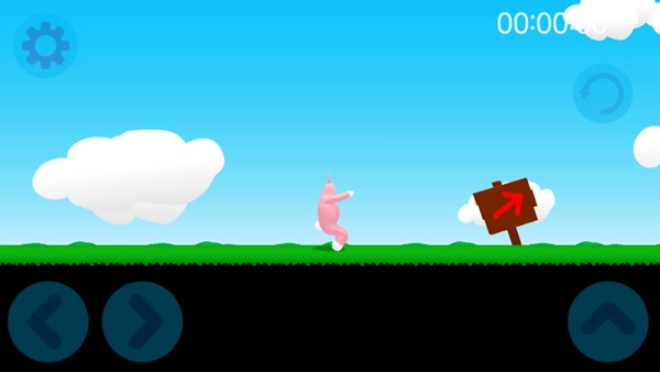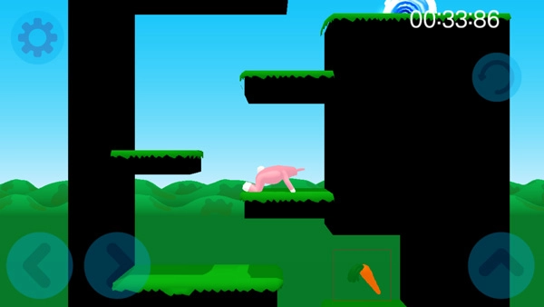 3、正式开始关卡挑战,第一步先熟悉流畅的操作。左下方的左右按钮用来控制兔子人移动,右侧是跳跃按钮。