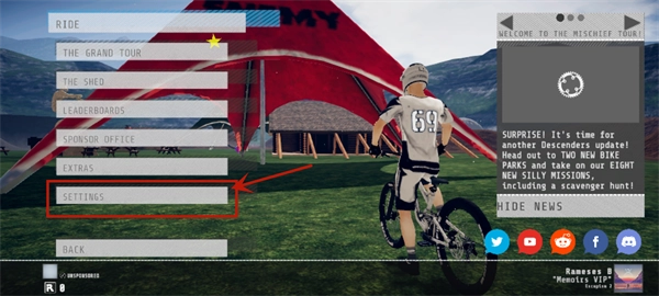 1、开启速降王者后,首先在主界面点击“settings”按钮。