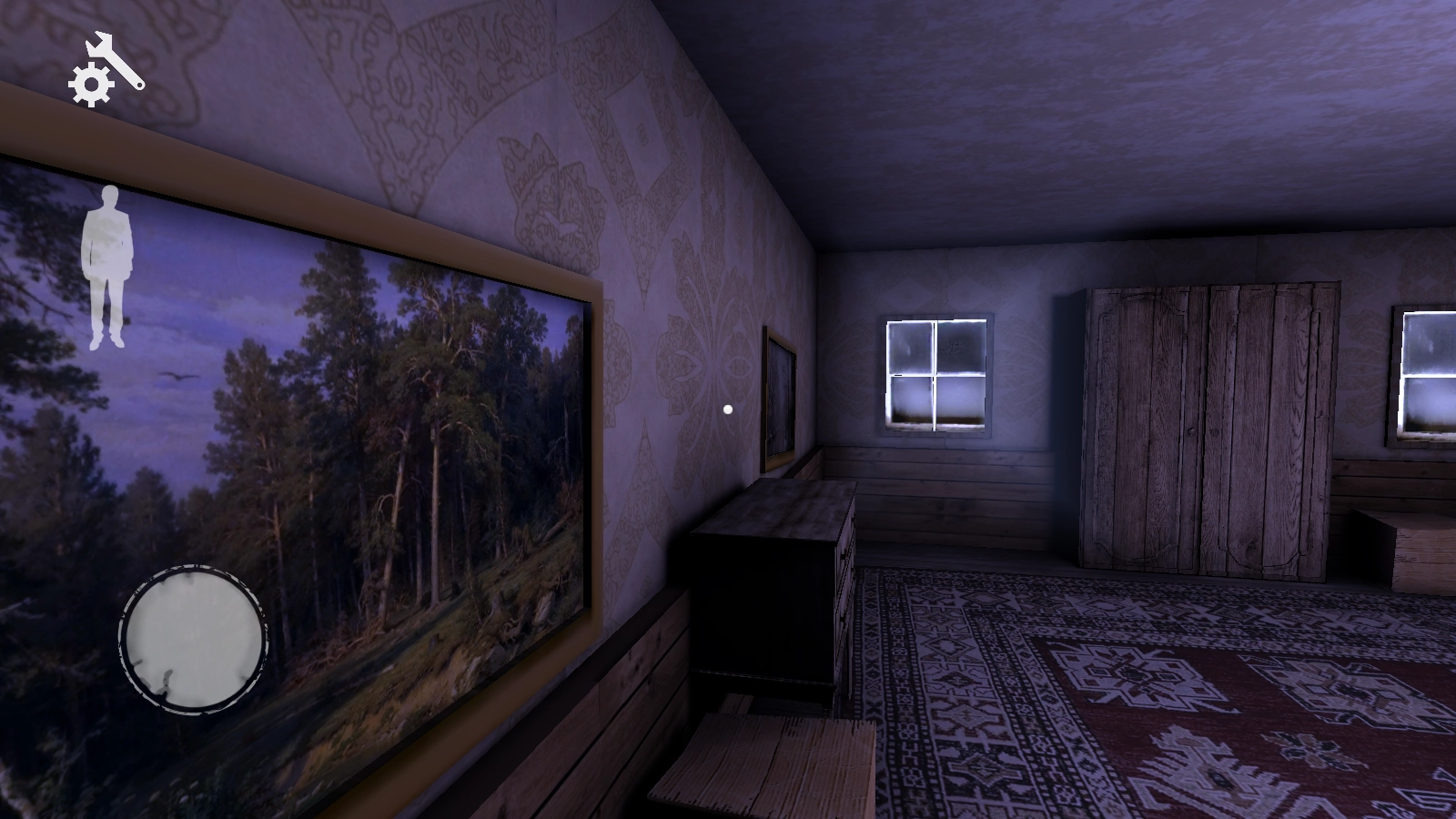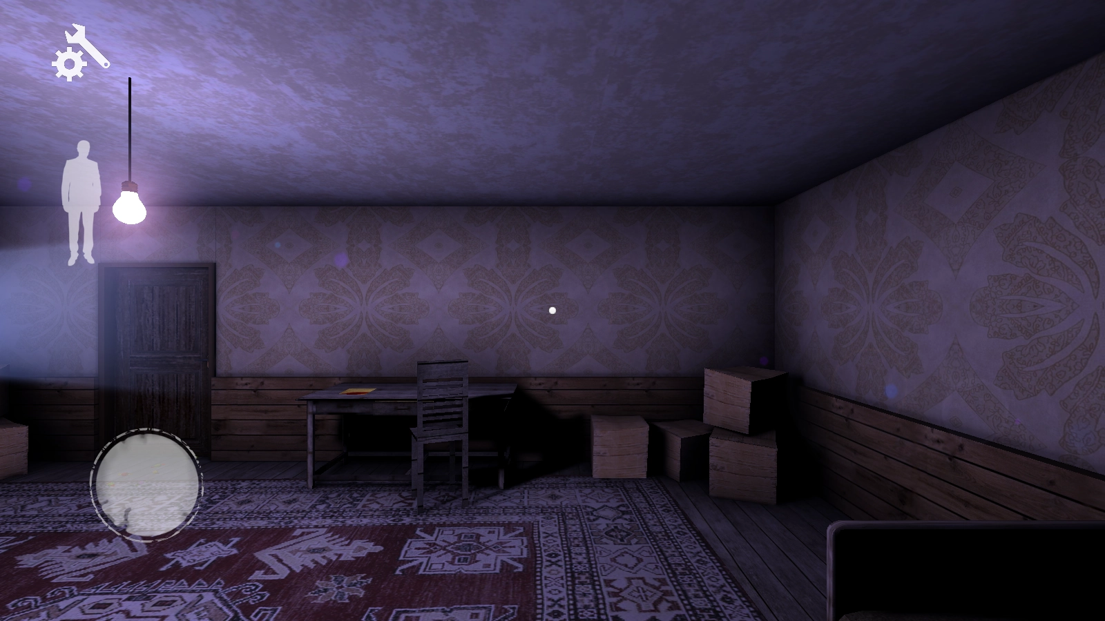 1当开启游戏后,一开始会处于一个小房间之中。操控前进与后退需移动左侧的虚拟摇杆,右侧摇杆则是用来控制观察视角。
