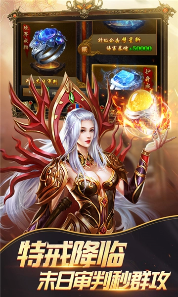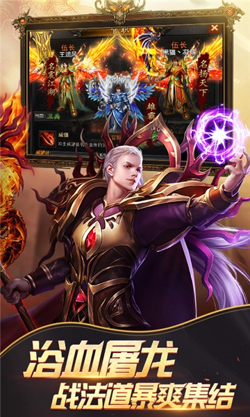 4、游戏内包含海量丰富玩法,不仅有刀刀暴击的刺激体验,还有烈焰PK的热血对战,更少不了沙城争霸的激烈角逐,助力各位玩家再度续写王者传世的经典篇章!