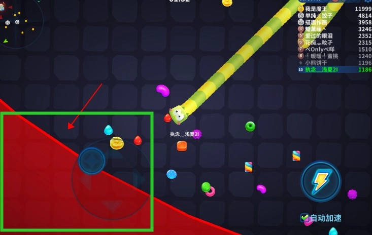 首要目标:游戏开启后的头1分钟,蛇的体型较小,击杀敌人获得的分数较少,同时加速操作会消耗自身长度。此阶段,应专注于吃掉散落在各处的亮点资源,特别是那些闪闪发光的冰激凌块,借此快速增长长度并提升分数。