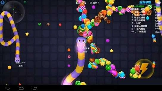3、抢分期:战况依旧激烈,宛如一场大混战。与以往有所区别的是,蛇蛇一旦死亡,便会掉落更为可观的分数。众人见状,纷纷疯狂争抢这些分数,结果导致了连锁死亡的局面,一时间,地上满是分数。在这种状况下,只需巧妙借助散落在地的分数,吸引敌方前来吞食,而后算计将其坑杀,就能轻松赚到大量分数!