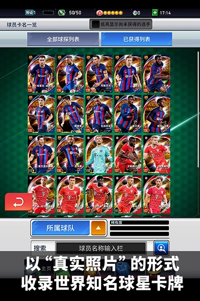 这款游戏凭借自然流畅的球员动作、精准无误的传球以及灵活多变的战术,让玩家在游玩过程中能够收集正版球员卡牌,同时尝试各类不同的阵型。玩家不仅可以组建最强阵容,还能通过强化球员,体验培养新手球员的乐趣。不仅如此,玩家还能用自己精心培养的球队与其他玩家进行实时对战。