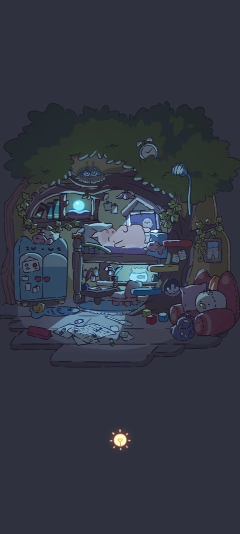 2. 进入游戏后,画面呈现如下:玩家操控的猫会在家中醒来,这时点击屏幕下方的地图按钮。