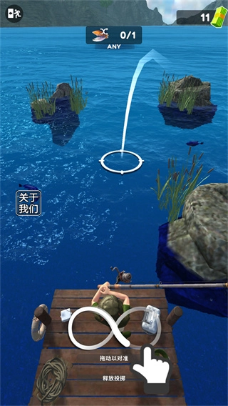 2. 随后拖动钓竿,使其对准钓鱼区域,点击“投掷”按钮即可。