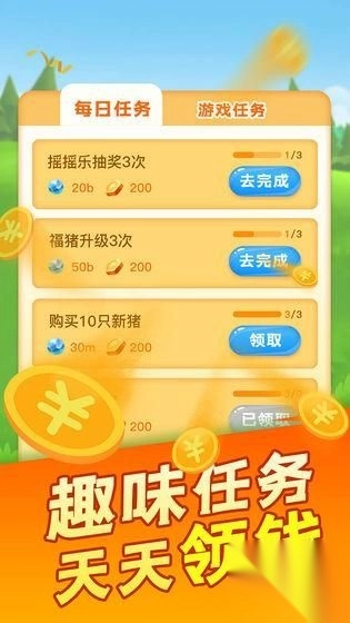 3、玩家能够派遣福猪外出打工,借助完成每日任务以及收集猪币的方式来赚取佣金,进而提高农场的经济效益。