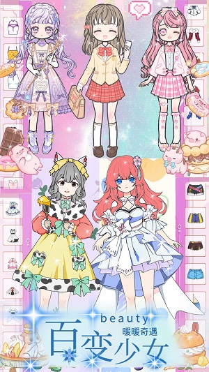 妆容、发型,还有服装(衣服、裤子)和鞋子,你尽可随心搭配,做个风格多变的女孩!