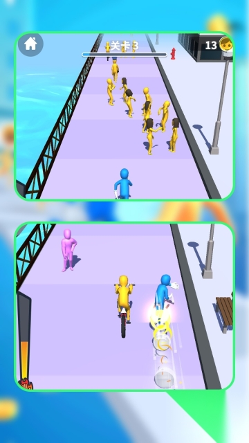 3. 该玩法设定不仅需要玩家灵活地躲避障碍,还得主动去“挑衅”其他火柴人,如此一来,使得挑战更具趣味性。