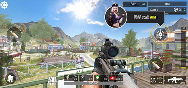 2、开镜后,就能看见远处的敌人,接着瞄准,点击左上角或右下角的开火键进行射击。